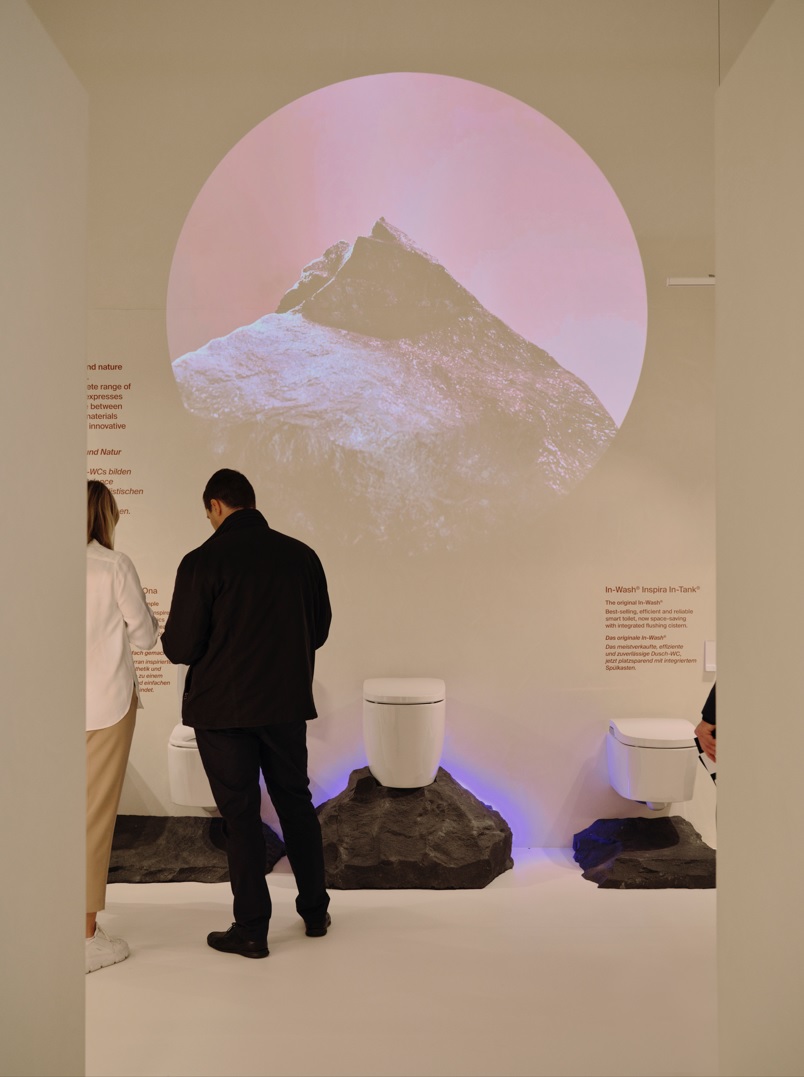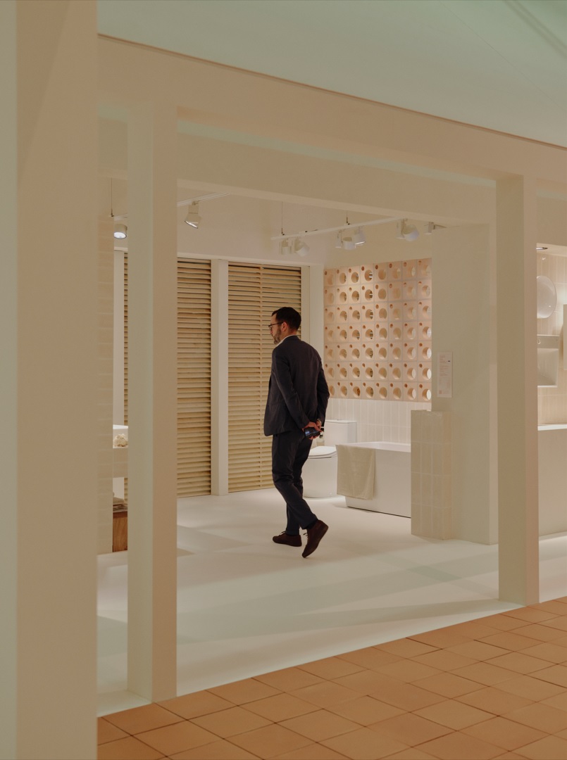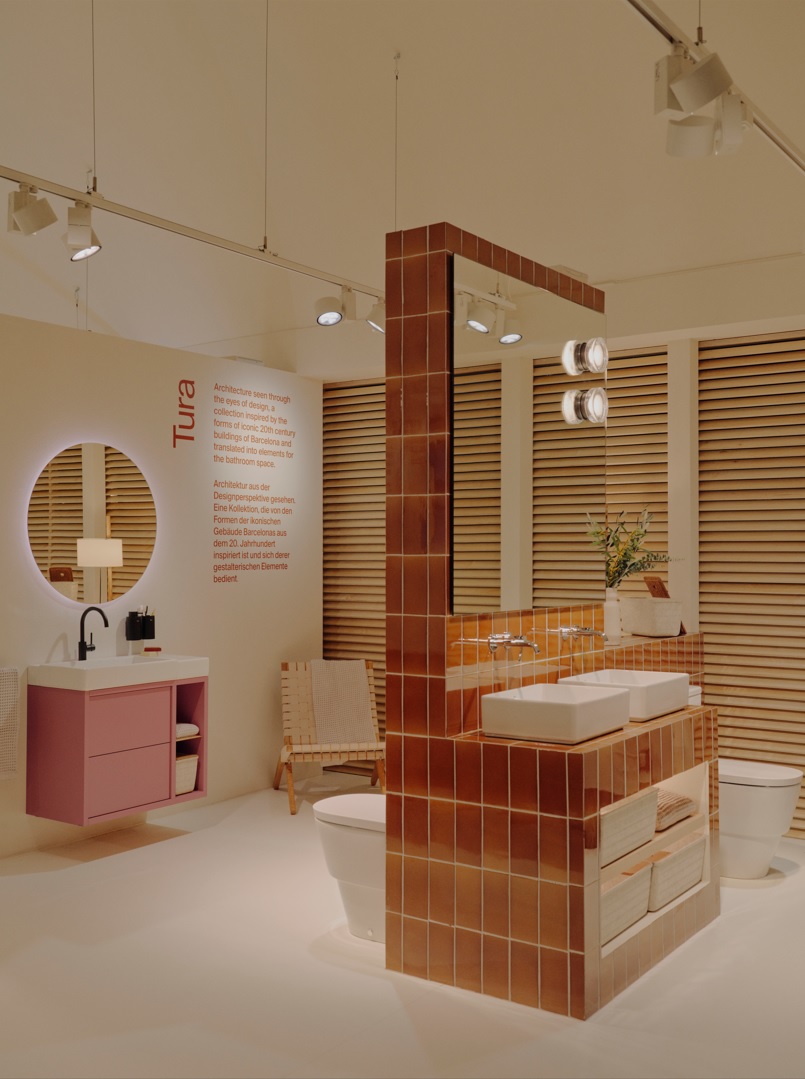 Roca arbeitete mit dem in Barcelona ansässigen Architektur- und Designbüro Mesura zusammen, um einen immersiven Stand zu gestalten, der die Besucher dazu einlädt, sich mit den neuen Produkten von Roca zu beschäftigen. Die Installation dreht sich um einen zentralen Platz, der an die Plaça, ein Symbol für Gemeinschaft und soziale Interaktion, erinnert und dessen Design zu Gesprächen und Interaktion mit den Neuheiten einladen soll.